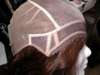 Diese sogenannte Montur ist sehr wichtig für den Halt der Perücke und darum sehr pfleglich zu behandeln.