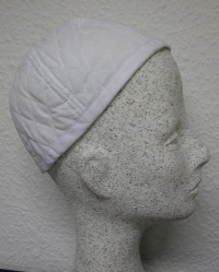 Wattiertes Cappy als Unterbau für eigene Tücher verhindert verrutschen und polstert den Hinterkopf aus . Tip : geht auch mit alten Schulterpolstern. Unterziehnetze für Alopezie- Kundinnen ! Durch den starken Gummirand und dem Netz extrem rutschhemmend . Gibt es in verschiedenen Farben .