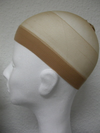 Auch für Chemopatientinnen geignet - der Unterziehstrumpf -unter dem eigentlich die Haare verschwinden sollen - der aber auch den direkten Kontakt der Perücke auf die Kopfhaut verhindert , falls man sehr empfindlich ist